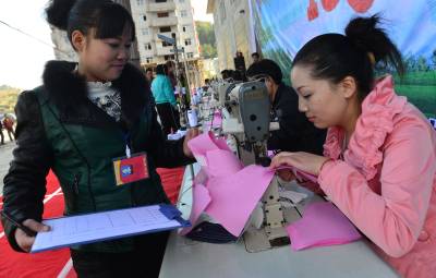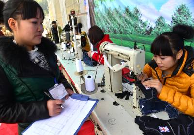 山乡新村工人赛技能 11月4日,建始县红岩寺镇秋桂村工业创业园内一家(双达)鞋厂正在进行缝制鞋帮技能比赛。近两年来,该镇着力打造新型城乡一体化发展示范乡镇,在村中新落成的镇级工业创业园里,吸引鞋厂、电子厂等一批企业相继落户,带动周边村庄数500多名农村劳力变产业工人。举办技能大赛,旨在进一步提高他们的技能水平,练就家门口就业好本领。本报视界网刘波摄 建始县新闻中心刘波联系电话13032794298