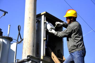 11月4日,在恩施市红土乡帅家垭变压器,技术员正在调试工变集中器。
