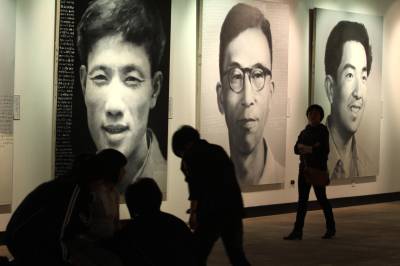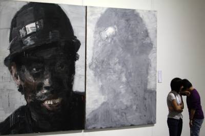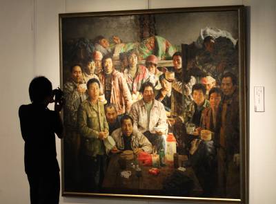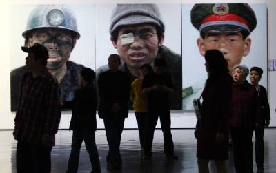 2010年4月30日,武汉美术馆,市民观看《众生相——徐唯辛作品展》。本次展览展出徐唯辛代表作《当代众生相——工农兵》系列、《2005中国煤矿纪实——矿工肖像系列》、《历史中国众生相1966-1976》等124幅作品。据了解,中国人民大学教授、画家徐唯辛从入选第九届全国美展的《酸雨》到第十届全国美展的《工棚》,直至矿工系列作品,他都将视野投向底层劳动人民的生存状态,无不显示出其在艺术题材方面对现实主义风格的青睐。