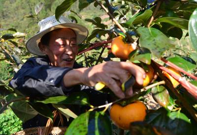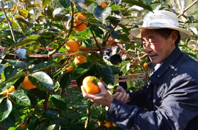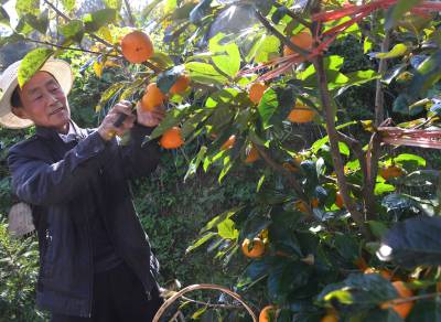 11月4日,建始县红岩寺镇蒿坝村66岁老农米绪东正在一片红火甜柿园里忙采摘。自2006年以来,由该县老促会筹集发展资金220万元,并引进优良品种,采取以奖代补方式,目前已在全县10个乡镇60村发展甜柿8000余亩,进入丰产上千亩,产品远销深圳等地,这一甜蜜“柿”业如正成为老区百姓圆小康梦的火红产业。本报视界网刘波摄 建始县新闻中心刘波联系电话13032794298