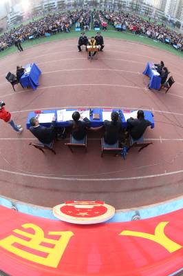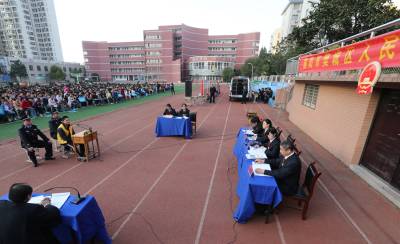 2014年11月4日下午3时许,湖北省襄阳市樊城区人民法院、樊城区人民检察院将审判庭设置在了诸葛亮中学的操场,代某抢劫一案的审判活动在此公开进行,诸葛亮中学的全体师生作为旁听群众,观摩了庭审的全部过程。被告人代某系成年人,于今年五月下旬与两名未成年人共同实施了抢劫两企犯罪。庭上,公诉人代表国家通过对证据的梳理和相关法律的应用,就被告人的行为是否为犯罪、犯何罪做出了有力的控诉。出于对未成年的人保护,共同犯罪的未成年人采取了另案不公开审理。为了更好的 提高学生法制意识,此次庭审前樊城区公诉科科长徐迎黎,就最基本刑事法律知识向全校师生做了简短的宣讲,庭审结束后,由樊城检察院干警建立的法律志愿服务队,通过发放法律知识宣传册等方式,进一步普及法制教育,为青少年的犯罪预防工作提供切实的保障。