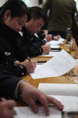 11月5日,秭归县公安局民警对该局领导班子成员“担当”情况在测评表上投出神圣一票。当天,秭归县“察担当促有为”干部专项考察第二工作组,采取“述职测评”、“实地查阅”、“个别座谈”等4种定量考察与定性考察相结合的方式,对秭归县公安局领导班子及成员作出“担当”考察与评估。秭归县委、县政府于10月下旬启动的“察担当促有为”干部专项考察,对全县县直部门领导班子及成员“勤政”、“廉政”、“善政”情况作出分类排队的考察评估,奖优惩劣,选贤任能,为县委政府选优配强领导班子提供决策依据。