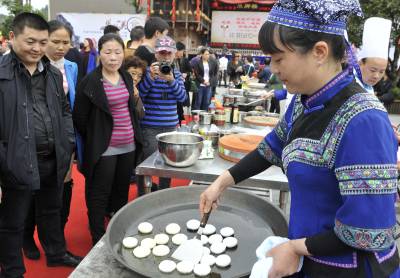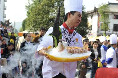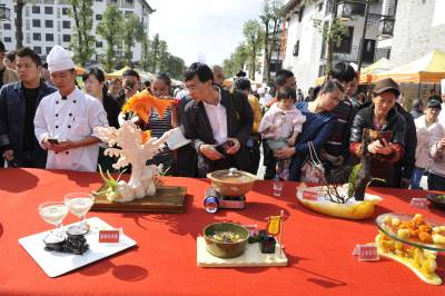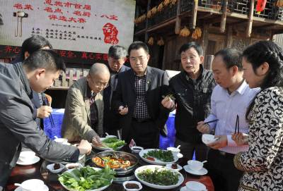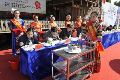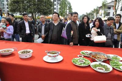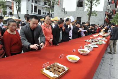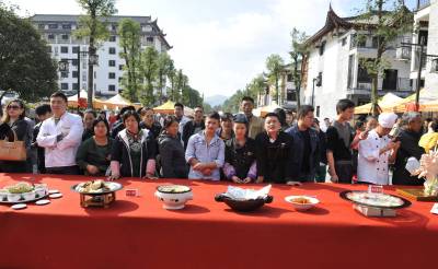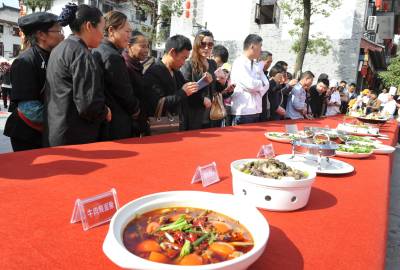 当日,湖北省恩施土家族苗族自治州恩施市在女儿城景区举行首届土家名菜、名点、名厨、八宝评选大赛,来自全市上百名专业、民间厨师在土家吊脚楼旁通过现场制作传统土家菜肴,参与角逐恩施市“十大新派土家菜”、“十大特色小吃”、“十大名厨”评比。获奖菜肴将作为地方特色“招牌菜”接待外来游客。