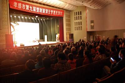 当日晚,云梦县演剧院热闹非凡,1000多名观众在这里免费享受文化大餐。这里正上演楚剧《巡按审母》。台上,精彩的舞美,演员娴熟的技艺,悦耳的演唱,赢得台下观众阵阵喝彩和热烈的掌声。这是孝感市第九届楚剧展演云梦县楚剧团惠民演出的第一天。这里将在随后的十天时间里,为城乡万余观众免费展演《巡按审母》《四姐下凡》《双玉婵》《寻儿记》《宝莲灯》《桃花女》《折子戏专场》等优秀传统剧目。