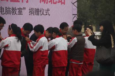 志愿者们现场承诺,将长期关注“春蕾电脑教室”的建设发展,关爱学校的留守儿童,提供志愿服务。