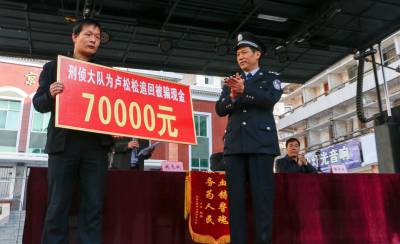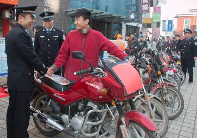 11月6号,京山县综治成果展暨集中退赃和销毁假冒伪劣产品活动会上,市民卢松松领回了被骗的70000元现金,杨集镇的村民刘小海高兴地推回了被盗的摩托车……一大批被抢盗的赃款、赃物重新又回到了失主手中。今年以来,京山县公安局以“雷霆护航2014”严打整治行动为主导,着力开展“打盗抢,除黑恶,破案扫毒保平安百日大会战”活动,共破获各类刑事案件572起, 逮捕103人,移送起诉193人,抓获网上逃犯131名。(张文胜)