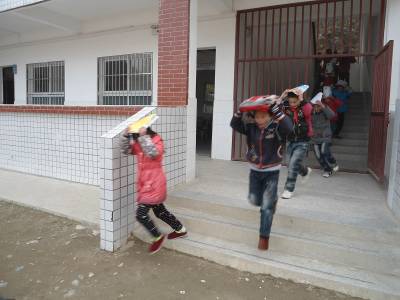 6日,郧县五峰乡界牌完全小学开展逃生演练,学生蒙着头躲在桌下。在“11.9全国消防宣传日”来临之际,郧县中小学开展消防宣传教育活动,通过逃生疏散演练、应急避震演练、演示灭火器材的使用等形式,让学生掌握在火场中迅速逃生、自救的基本方法,提升安全意识与避险自救能力。(视界网 周学山)