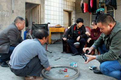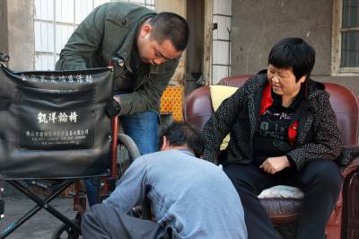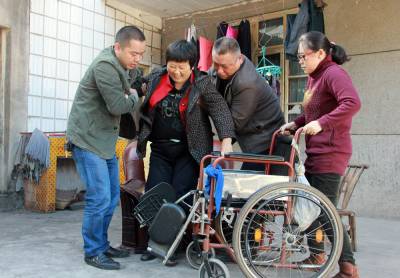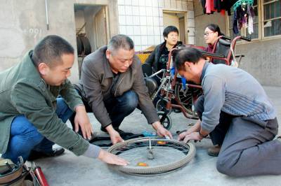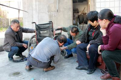 6日,湖北鹤峰县烟草专卖局志愿服务队带着修理工来到残疾病人王维艳家中,帮助她修理轮椅,更换轮胎,还与她亲切交谈,王维艳感动的说,共产党的政策真好!(视界网王群拍摄报道)
