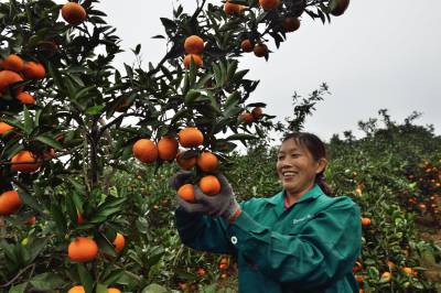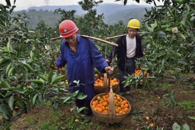 柑桔丰收柑农乐 11月6日,宜都市枝城镇何时阳店村农民在收获柑桔。枝城镇今年柑桔产量突破5万吨,民创收3000多万元。