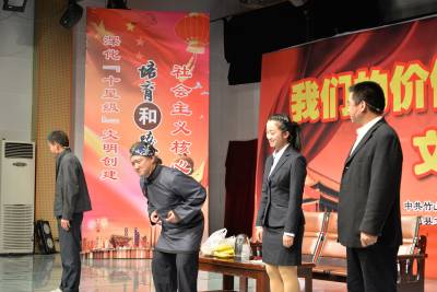 6日晚,竹山县举行社会主义核心价值观道德风尚颁奖仪式,多个精准扶贫的文艺类节目受到观众的一致好评。今年以来,该县以培育和践行社会主义核心价值观为统领,以丰富”十星级“系列文明创建活动为主抓手,以精准扶贫帮困为重要推手,致力打造“十星级精神高地”和“秦巴经济强县”,先后派出76个工作队深入到全县273个贫困村开展帮扶活动。以精准扶贫和争创系列“十星级”为题材的文艺节目,真实反映县直各单位在精准帮扶困难群众中用真心、动真情地为老百姓树信心、解困局、办实事、拔穷根,以“十星级”争创活动向社会传递着满满的正能量,顺利推动了全县各项中心工作。 石濡华 摄 竹山县国土资源局 电话 13797858497 邮编 442200