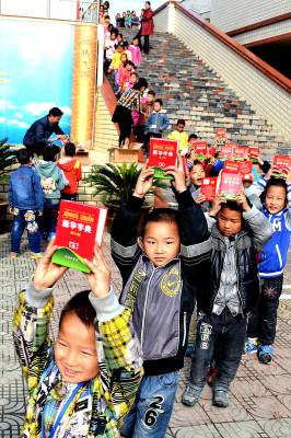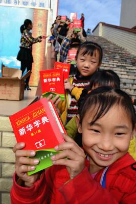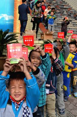 第二批免费《新华字典》 (通讯员 杨显有) 11月7日,湖北省郧县柳陂镇中心小学为159名今秋新入学的一年级学生每人发放了一本政府免费提供的精装《新华字典》。去年,我国首次为全国农村地区中小学1至9年级在校学生免费提供《新华字典》,今年为第二批,用于补充今秋初入学的一年级新生。 (供稿:湖北省郧县柳陂镇中心小学 杨显有 13277199605 442532)