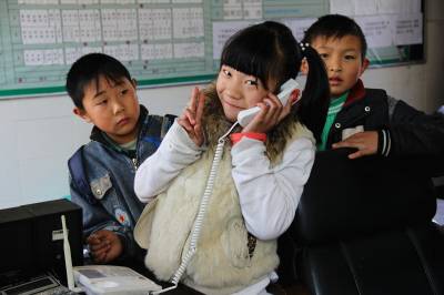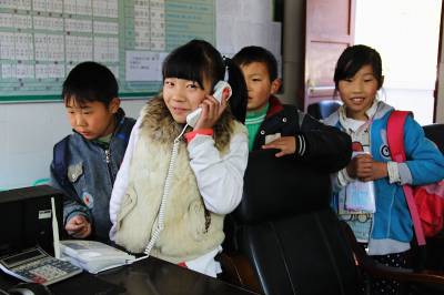11月6日,笔者到一所村小工作检查,正遇几个学生站在老师办公桌前打着电话。该办公室的老师老师告诉我,每周学校都会安排时间,让留守孩子给在外打工的父母打个电话,告诉学习,交流亲情。看孩子与其父母电话交流的神情,好甜蜜,好幸福,连后面几个等待打电话的孩子都开心地笑了。(本报视界网图片库 冯本勇摄影 联系电话:15607261278)