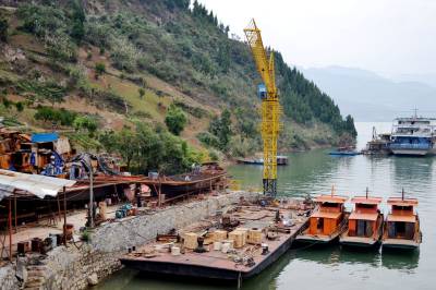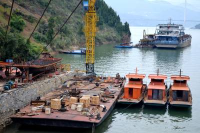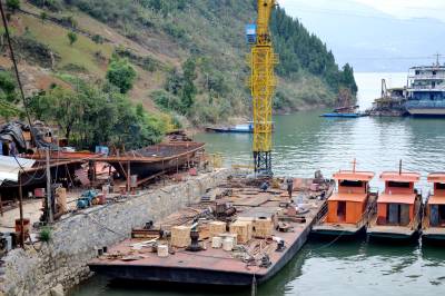 11月8日,“运发”客轮的上囤,巴东县官渡口镇的民营企业——鑫盛船务一片繁忙景象,工人们忙过不停,正在紧张地对三艘学生渡船、两艘客轮进行电焊工、打磨、刷油漆。