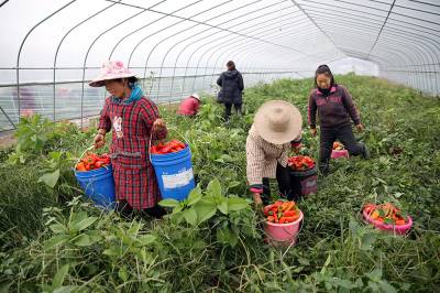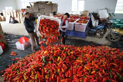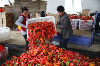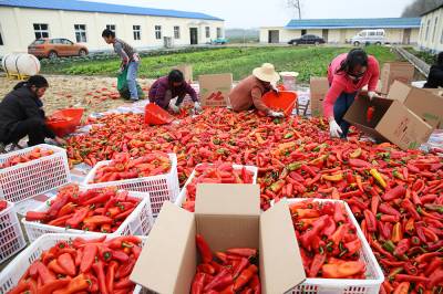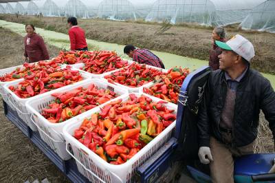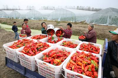 11月9日, 武汉绿洲源农业开发有限公司的辣椒种植基地,工人师傅们正在抢收辣椒。该集团拥有订单种植基地10万多亩,主要分布于新洲区的汪集、李集、三店、凤凰、道观等地十余个村镇,带动8万余农户年均增收1500元以上,2014年公司投入9000万元发展了7000亩的设施农业,年生产蔬菜8000万斤,并通过集团完备的农产品营销网络,使当地农副产品安全有序地进入武汉市场及各大超市,并远销到全国十几个省会城市,得到了各级领导和社会行业人士的一致认可与好评。