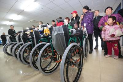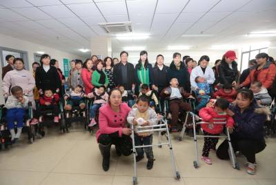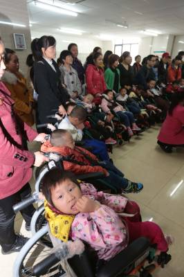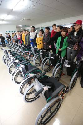 11月10日,湖北省襄阳市第一人民医院西院区举行赠送仪式,将该市残联发放的56部儿童轮椅,无偿捐助给在这里进行康复治疗的脑瘫患儿,为他们圆梦。