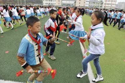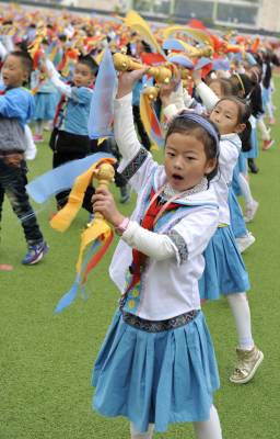 近年来,恩施土家族苗族自治州恩施市当地教育部门及学校结合校园健身活动实际,开设民族操,融入铜铃舞、摆手舞、莲厢舞、清江舞蹈、竹竿舞、木棍舞、秧歌舞、茅古斯舞等具有当地土家族、苗族文化元素的舞蹈,方便学生在课间操、阳光课堂时间里健身、娱乐,既让学生锻炼了身体,也让传统少数苗族文化得到了传承,校园刮起了一股绚烂的土苗舞蹈“民族风”。