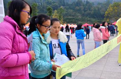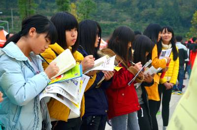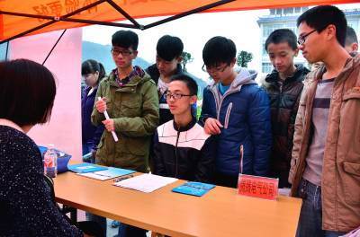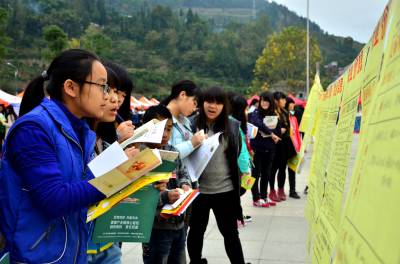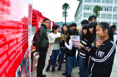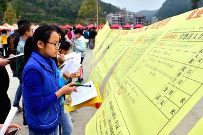 11月11日,恩施州宣恩县中等职业技术几名学生正在咨询自己心仪的岗位。 当天,宣恩县举办了以“促进校企合作、加强劳务交流、服务县域经济”为主题的校园招聘会,来自县内外39家招聘企业进场招聘,为广大求助者提供了1500多个岗位,吸引近千人参加招聘会。此次活动旨在加大我县对外人才交流引进,搭建校企合作交流平台,创新校企合作培养模式,服务县域经济和工业园区企业用工,构建良好的劳务协作关系。