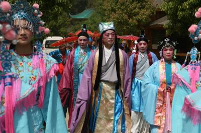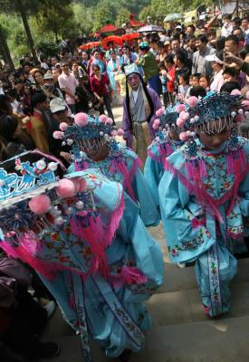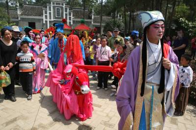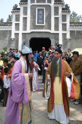 ”五一”期间,在素有中国三国文化之乡的湖北襄樊,当地文艺剧团的演员走进诸葛亮夫人故里黄家湾风景名胜区,推出《诸葛亮娶亲》、《黄承彦嫁女》等大型古装情景剧,再现发生在襄樊的三国人物历史故事,让游客直观感受三国文化的无穷魅力,文化游中快乐度过小长假。
