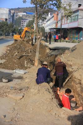 整治环境迎调水 11月11日,南水北调水源区竹溪县水坪镇集镇整治污水排放工程工地如火如荼。在国家南水北调工程临近调水之际,该镇加快推进集镇环境整治,为群众营造了一个干净整洁的生活环境,确保清水往北送。(视界网 王忠春 摄)