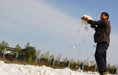 喜晒新棉 2014年11月12日,云梦县隔蒲谭镇农民在县经济开发区喜晒新棉。今年,云梦县积极引导棉农大力发展杂交棉,科学种植、科学管理,棉花获得好收成。