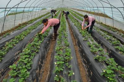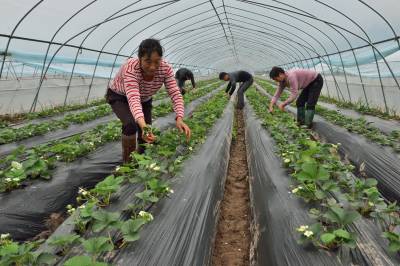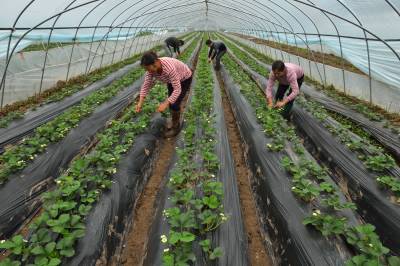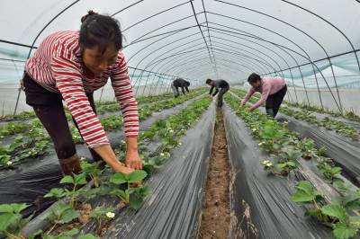 草梅花儿开 11月12日,宜都市枝城镇全心畈村鲜于应志的草梅园里,管理人员在为草梅疏叶。今年4月,鲜于应志以每亩1000元的价格流转土地21亩种植草梅,如今,草梅已开花,元旦、春节期将大量上市销售。
