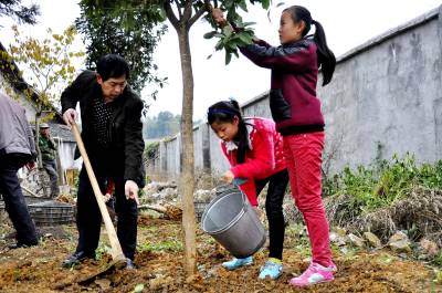 > 绿化校园植树忙(彭绍峰摄)