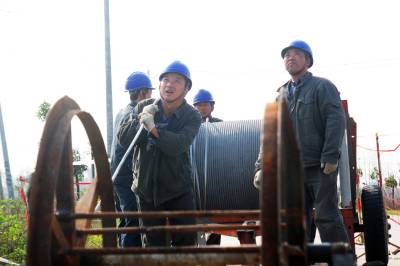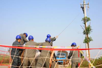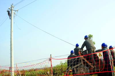 11月11日,立冬后的第5天。来自老河口市供电公司的5支施工队正忙碌地奋战在洪山嘴镇兰家岗村,为10千伏赵岗线更换电杆和导线,实施农网升级改造,为迎峰度冬做好准备。据悉,年底以前,该公司将新建和改造农村台区30个,改造洪山嘴镇10千伏线路两条,重点解决深山区和偏远农村地区低电压问题,确保当地群众度冬可靠用电。图为施工人员在架设10千伏导线。