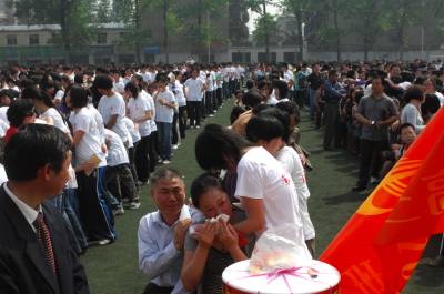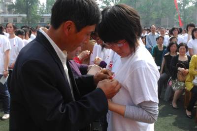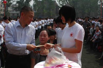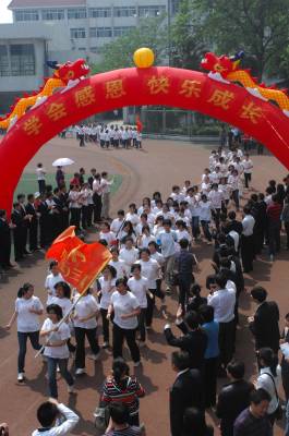 5月2日,湖北省襄樊市人民政府在第四中学为1800多名学生举行成人仪式。学生们参加了成人宣誓、佩戴成人纪念章、向家长致答谢礼、点燃成人生日蛋糕蜡烛,跑步跨入”成人门”等活动,纪念长大成人,为报效祖国尽力。