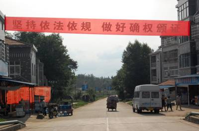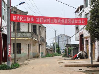 2014年11月13日,云梦县城乡宣传农村土地承包经营确权颁证宣传横幅标语。