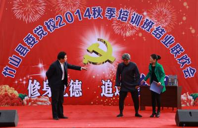 “修身立德,追逐梦想”为主题的联欢会在竹山县委党校举行 11月14日上午,竹山县委党校2014秋季培训班的学员在表演节目。当日,一场以“修身立德,追逐梦想”为主题的结业联欢会在竹山县委党校举行。这场由学员自创自编、自导自演的联欢会,充分展示了全体学员积极向上的进取意识,抒发了对事业和生活的热爱。(视界网 章磊 摄)