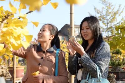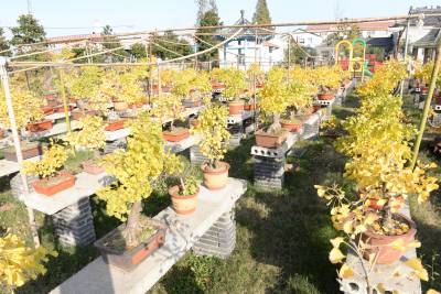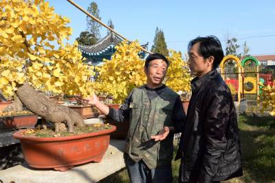 安陆借银杏资源优势,发展银杏盆景产业。图为,11月13日,该市棠棣镇李园社区1000盆银杏“尽带黄金甲”,吸引游人驻足欣赏。据园艺师黄彦桥介绍,造型奇特的盆景单价在万元以上。(特约记者 黄爱东 通讯员 黄德望 陈武锋 摄) 通联地址:安陆市委宣传部新闻科 联系电话:15072590110