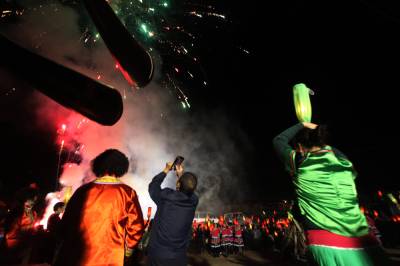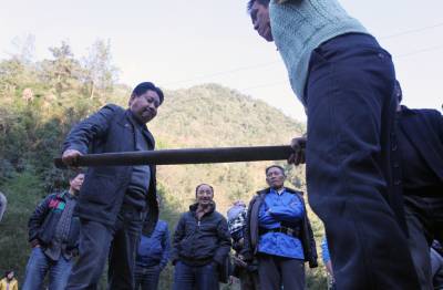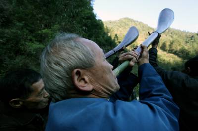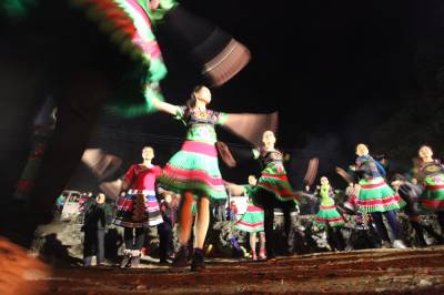 一年一度的“托把灯”会于11月14日在鹤峰县容美镇大溪村槽门寨子举行,村民们欢聚在一起喜庆丰收。