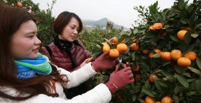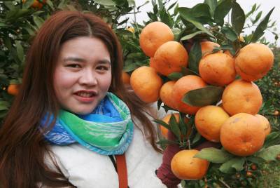 11月16日,湖北省武穴市一群上班族结伴来到城郊市果园场,看到自己心仪的橘子就剪下来,与果农分享秋收的快乐!眼下正是秋收秋播的黄金季节,果农难得兼顾两头,就利用媒体召集城市上班一族到自己的果园享受自采乐,果农节省了摘卖的时间,上班族身心又得到愉悦,一头丰收两头乐。本报视界网冯怡红摄