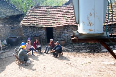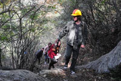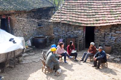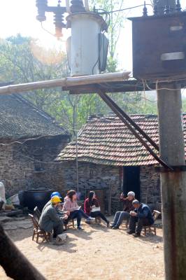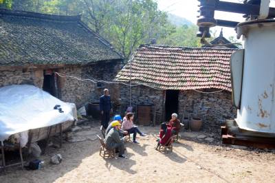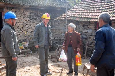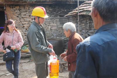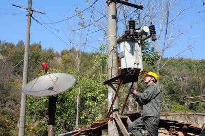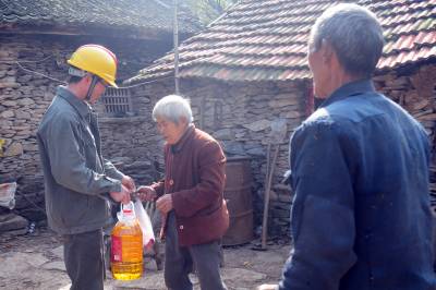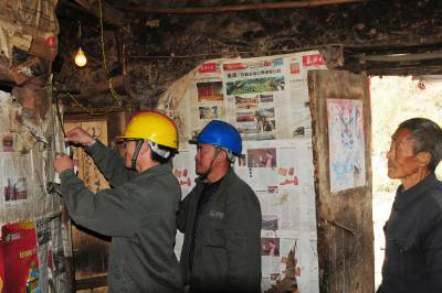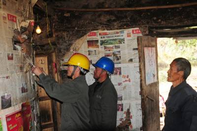 老河口市供电公司从2012年农电体制改革至今,先后有5任抄表员连续不间断地为该市洪山嘴镇杨华岗村2组偏远山区的“三户半(三户居民和一位单身汉)”村民提供用电服务。去年春节过后,随着另外两户村民和一位单身汉陆续搬迁出山外,现在只有一户村民的两位留守老人居住,然而,电力员工的接力服务依然在延续。图为11月14日,老河口市供电公司的工作人员翻山越岭来到杨华岗,为老人检修室内电力线路,送上慰问品,陪老人唠嗑。