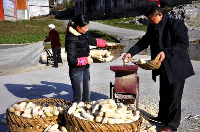 “爱心服务”队暖民心 11月18日,在恩施市红土乡大岩村,爱心服务队队员正在帮扶加工晒玉米。 近年来,该乡计生协会组织13个“爱心服务”队,通过开展“送温暖、献爱心”、“结对子”帮扶活动,为计划生育特困家庭提供了爱心服务和健康服务,定期为她们解决生活上的困难。服务小分队为她们带去了计生宣传知识挂图,为已怀孕妇女发放了叶酸,更好地将人口管理与婚育新风宣传有机结合起来。(视界网彭绍峰黄平摄)