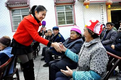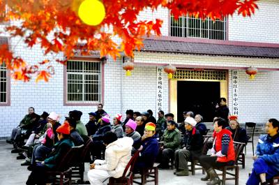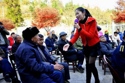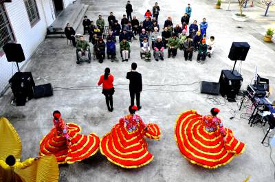 11月19日,在恩施市红土乡福利院文化广场上,演员正在表演文艺节目。