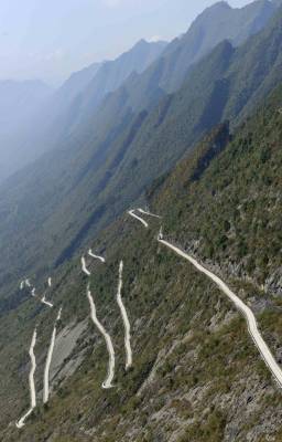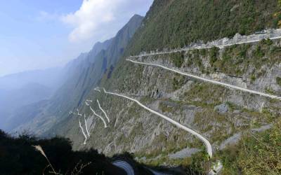 位于恩施土家族苗族自治州恩施市新塘乡的双木公路(双河村至木栗园村),是一条全长约20公里的乡村公路,该公路经过名为扯根坡的大悬崖,长约4.4公里,非常险峻,犹如挂在悬崖上,被称为“壁挂”公路。 易鸣铭 摄