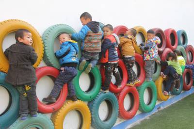 轮胎攀缘墙 安全又环保:11月19日,小朋友们在攀缘轮胎“墙壁”。丹江口市石鼓镇幼儿园将废旧轮胎漆成各种色彩,固定于墙面,供幼儿攀缘,安全又环保。孩子们在开心运动中,达到强身健体的目的。(视界网 钱芹 朱晓琳 摄) 详细通联:丹江口职业技术学校办公室:钱芹 邮政:442708 手机:13477990812