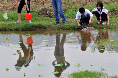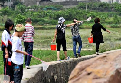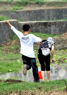 3日,宣恩县珠山镇莲花坝村的农田里,许多市民带着孩子在田间感受劳动氛围,或者参与捕鱼是活动。如今生活在城镇的孩子因各种条件限制,很少有机会走近田间地头接触”农事”,以致许多城市孩子连最基本的生活常识缺失。利用假期让孩子走进田间,成为许多城市家庭度假的一种方式。(视界网签约摄影师:宋文摄)