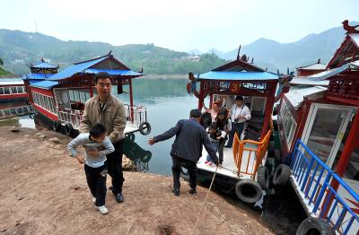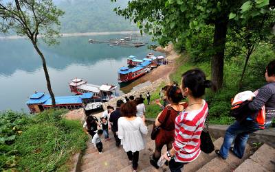 3日,宣恩县双龙湖风景区游人络绎不绝。为确保西南抗旱用电,今年以来该县各电站保持满负荷发电,导致各水库水位处同期最低水平,暴露在水面外的山石泥土对景点美观造成一定影响,但这并没有影响民众参与生态游的热情。(视界网签约摄影师:宋文摄)