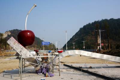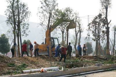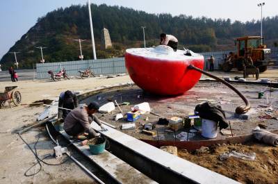 11月20日,郧县开发区樱挑沟村的撄桃广场正在加紧建设,工人们分成多组进行植树,广场场平铺设,撄挑雕塑安装上色,水电安装等项施工。撄桃广场占地50000平方米,总投资1800万元,于4月19日动工,12月中旬将落成开园,这也是全省第一家以撄挑命名的特色广场。樱挑沟村以樱挑节而响誉全省,11月15日樱挑沟村被评为全国最美村镇称号。 视界网周家山 罗静摄