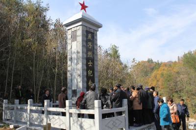 11月20日,在鹤峰燕子镇的燕子烈士纪念碑前,40多位离退休干部职工缅怀革命烈士先辈们。