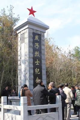 今年建成的燕子烈士纪念碑,顶部为一颗红五星,碑高4.8米,主碑直径1米,正面镌刻着“燕子烈士纪念碑”,背面镌刻着“燕子烈士纪念碑志”。