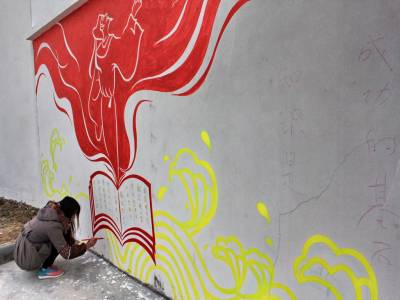 2014年11月19日,位于云梦县伍洛镇的一所私立学校,手绘墙画格外引人注目,逗人喜爱。该校校园绿水相映,手绘墙画让校园更加美丽,逗人喜爱,受到师生和家长的青睐。本报视界网 陈保忠 摄