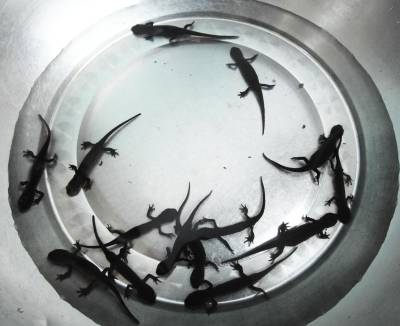5月3日上午,经过襄樊市水产局专家周合高鉴定,市民刘老师在南漳县一山涧发现的动物为国家二级野生保护动物蝾螈,鉴定结果出来后,刘老师委托专家和记者,将这16条珍稀两栖爬行动物移交襄樊市动物园进行放生处理。 5月1日,刘老师在南漳游玩时,在山涧发现了几条酷似大鲵(俗称娃娃鱼)的动物,就捕捉了一些,他发现,该动物外型像大鲵,但该动物前腿为4爪,后腿为5爪,而大鲵为前腿5爪,后腿4爪,自己无法判定,经过专家鉴定,为二类野生保护动物蝾螈。 据介绍,蝾螈是有尾两栖动物,我国常见的是东方蝾螈,人们简称它为蝾螈。它的肚皮是红色,是良好的观赏动物。另外,蝾螈是生物学家研究动物胚胎发育的好材料。