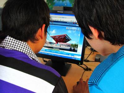 5月3日,湖北郧县刘洞镇初级中学学生正通过网络逛上海世博园。五一假期,该校为学生免费开放微机室,学生只需轻点鼠标,就能在轻松欢快的氛围中了解上海世博会盛况。(视界网签约摄影师曹忠宏摄影报道电话13294212877)