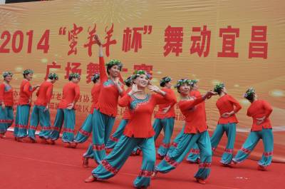 2014年11月20日下午,由宜昌市老年体育协会主办的2014宜昌市“蜜羊羊”杯广场舞大赛在宜昌城区汉口银行门前广场举行。来自宜昌城区各社区的28支健身舞代表队600多名队员参加了角逐。