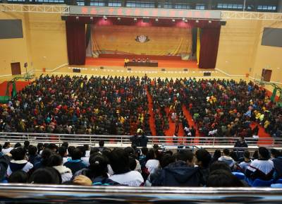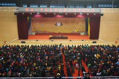11月22日下午,郧县第一中学校园内热闹非凡,来参加第四期家长学校开学的2000多名家长冒雨来到学校体育馆,看牌对号坐在孩子班级的座位上,使体育馆內球场上坐满了家长,高一班和高二班共44个班的学生坐在四周高高的看台上,一同听取学校领导对家庭和学校相结合的教育论述,以及语言沟通和交流,以及教育孩子时家长要注意的语言和语气,并为到会的家长发放了湖北省教育厅关心下一代工作委员会组编的<<家有儿女>>,做一名合格的高中生家长图书。