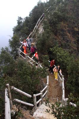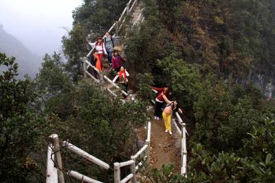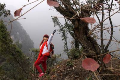 “驴友”冒雨徒步三峡芝兰谷