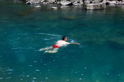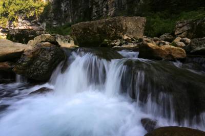 逝者如斯,如今的五里峡崖壁上神秘的洞穴早已不知是何人何时在里面生活过,只有岁月的风雨把洞口雕刻得苍桑而深沉。巨石,在河水的揉搓中,变得越来越小,越来越圆滑;世事,在时光的河床里,被淘洗得精彩粉呈;我们留连在五里峡中,在它的青山绿水中徜详,不知不觉,日头偏西,我们怀着依依不舍的心情一步三回头的离开五里峡,但我们深信,我们一定会再来!